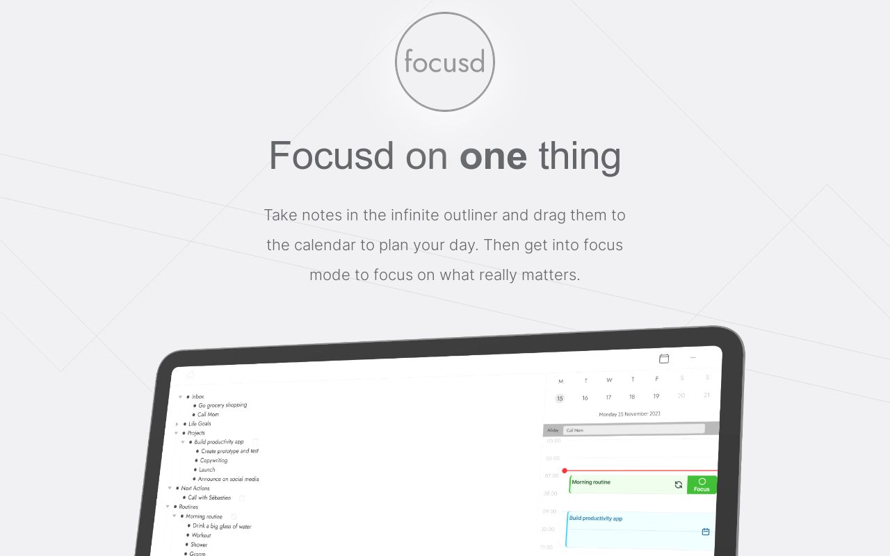 An infinite outliner with a strong calendar integration. Take notes, block time, and focus on what really matters.