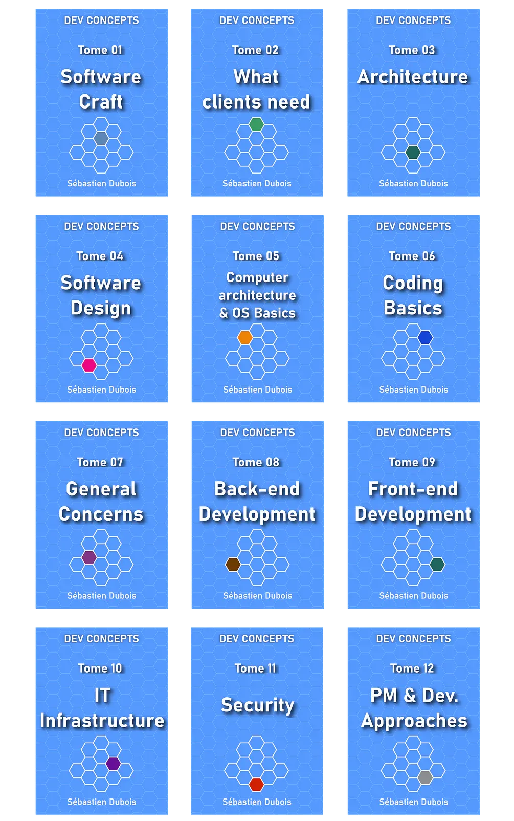 With this new book, I want to zoom out a little and talk about software solutions as a whole; from the business goals to achieve to the expression of how those goals will be met: architecture, design, back-end development, front-end development, IT infrastructure, as well as overarching principles like IT security.