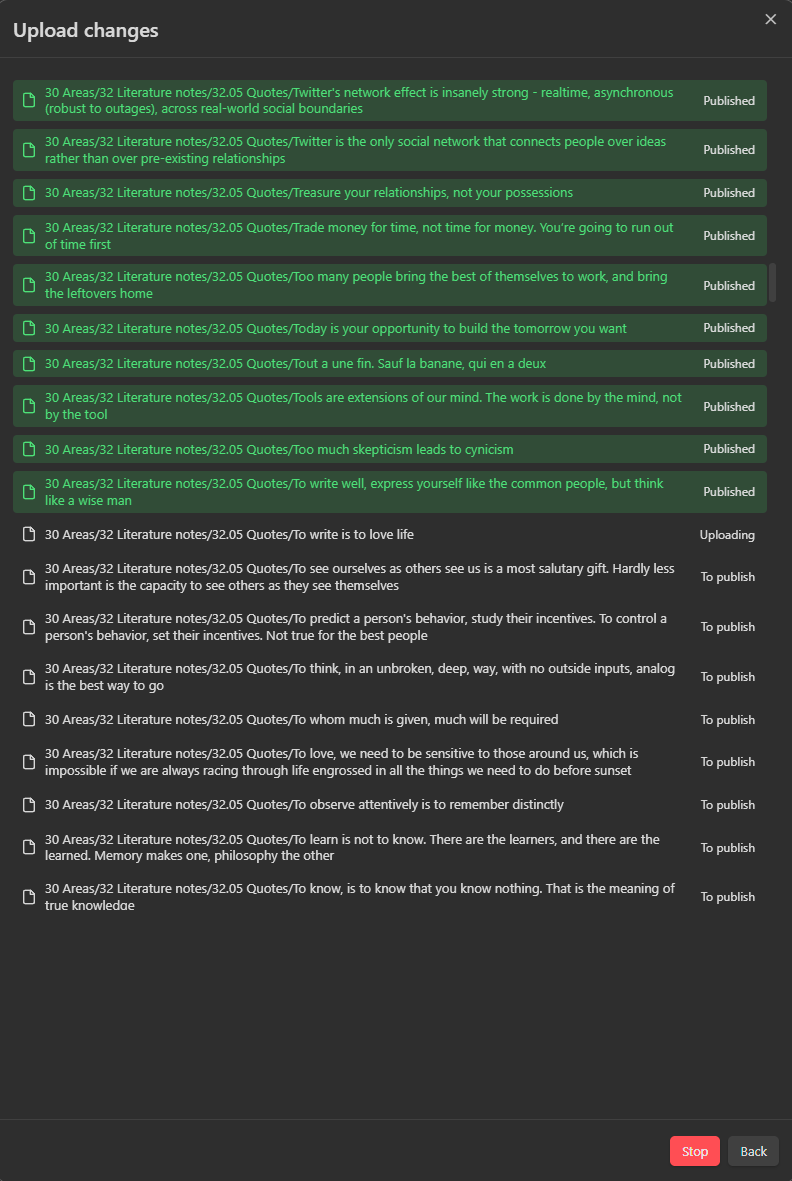 I published those using Obsidian Publish, which is also a way for me to support the developers of Obsidian. There are a few bugs/issues I need to iron out, but it's a start. Now, I can easily publish new and atomic ideas without having to care too much. Those remain my work notes, and as such they're unpolished, and forever imperfect.