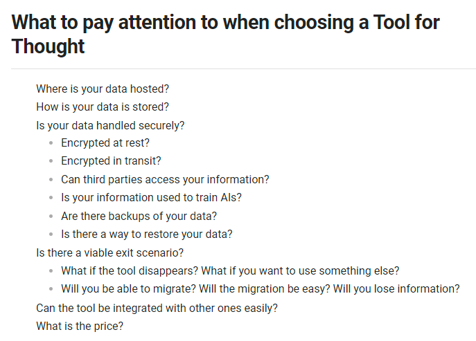 This is a note I wrote while working on the Knowledge Management course. These are useful questions for choosing the right tool for you.