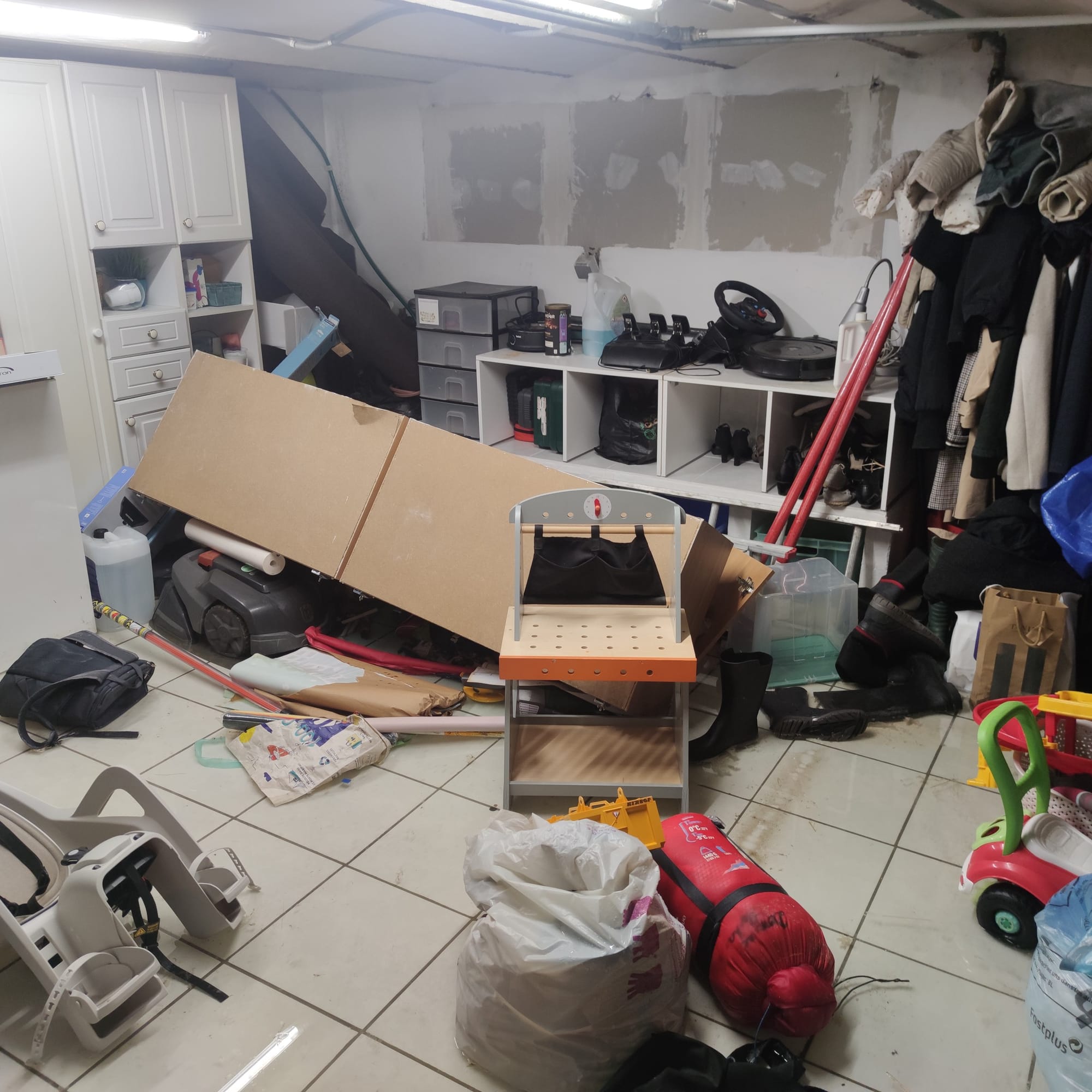 A heating pipe under the tiles of the living room had a leak, and it flooded the entire cellar. It probably lasted for a few days before we came back... We had to throw away almost everything that was in the cellar. And now, we have to find a tiler to redo the living room and the dining room.
