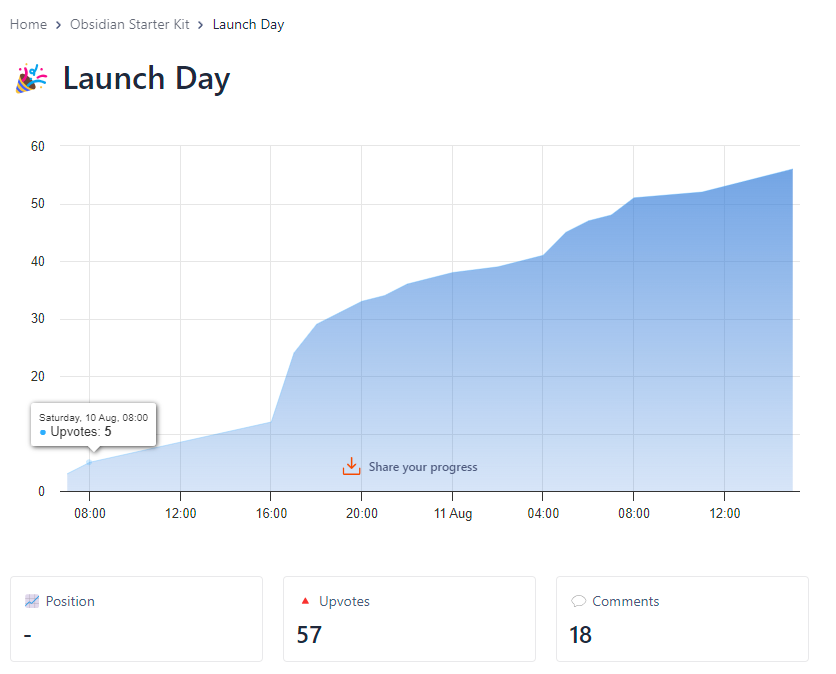 As I've announced before, last week I launched the Obsidian Starter Kit on Product Hunt. It was my first launch, and even though I didn't make it to the top of the ladder, I think I did all right.