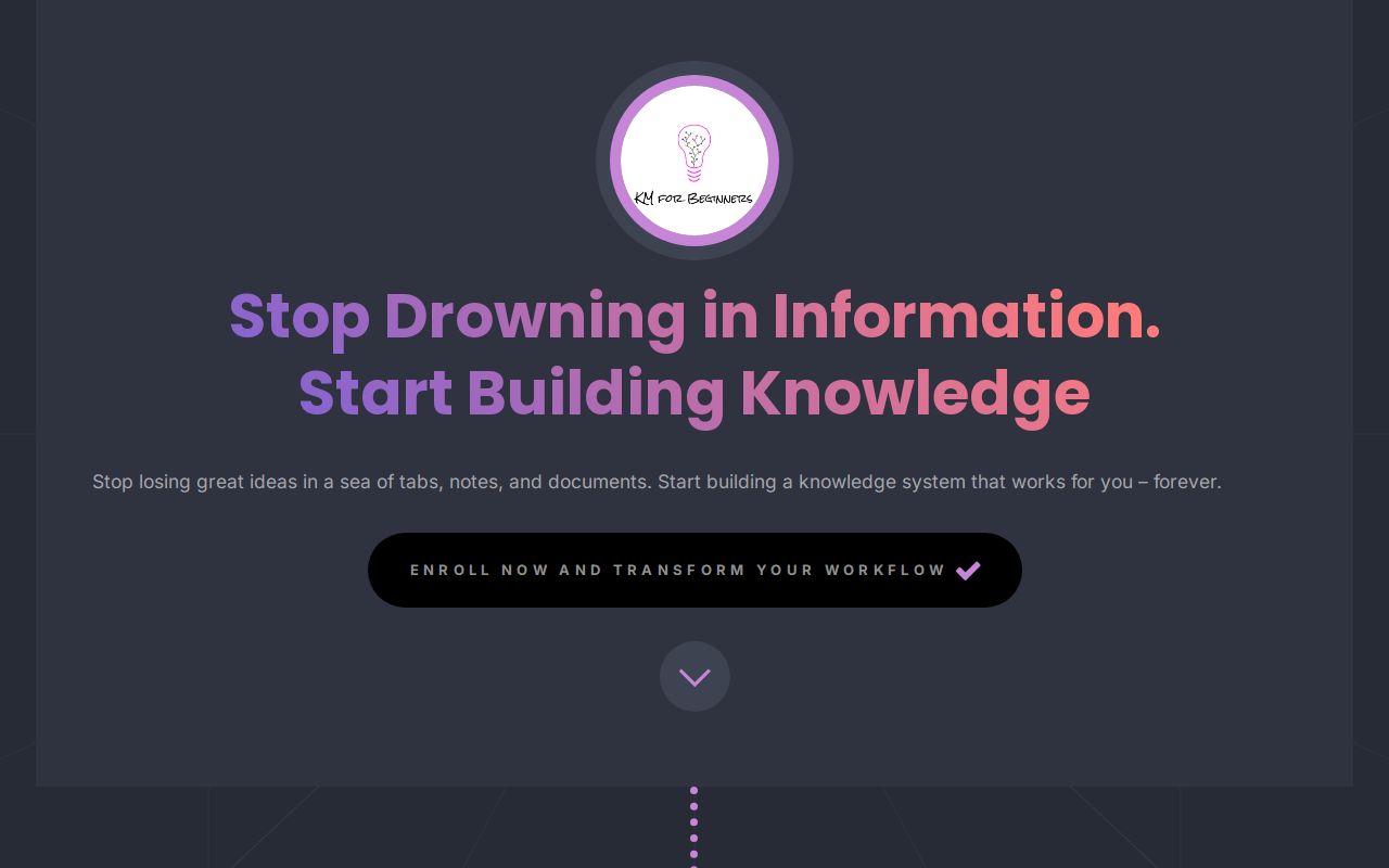 I've just completely revamped the Knowledge Management for Beginners course sales page (https://knowledge-management-for-beginners.com). It's a fresh take on explaining the course's value proposition and structure.