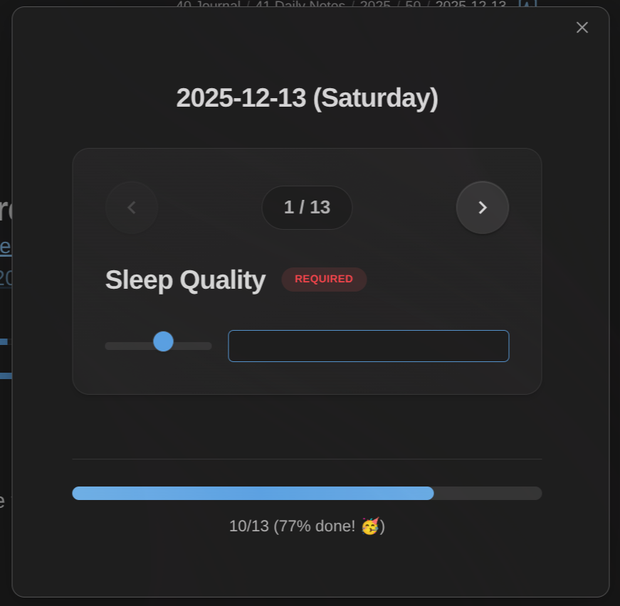 A few days ago, I started building the Life Tracker plugin for Obsidian. I needed it for myself to better track health-related information and visualize patterns over time. I shared it on Reddit, expecting maybe a handful of responses.
